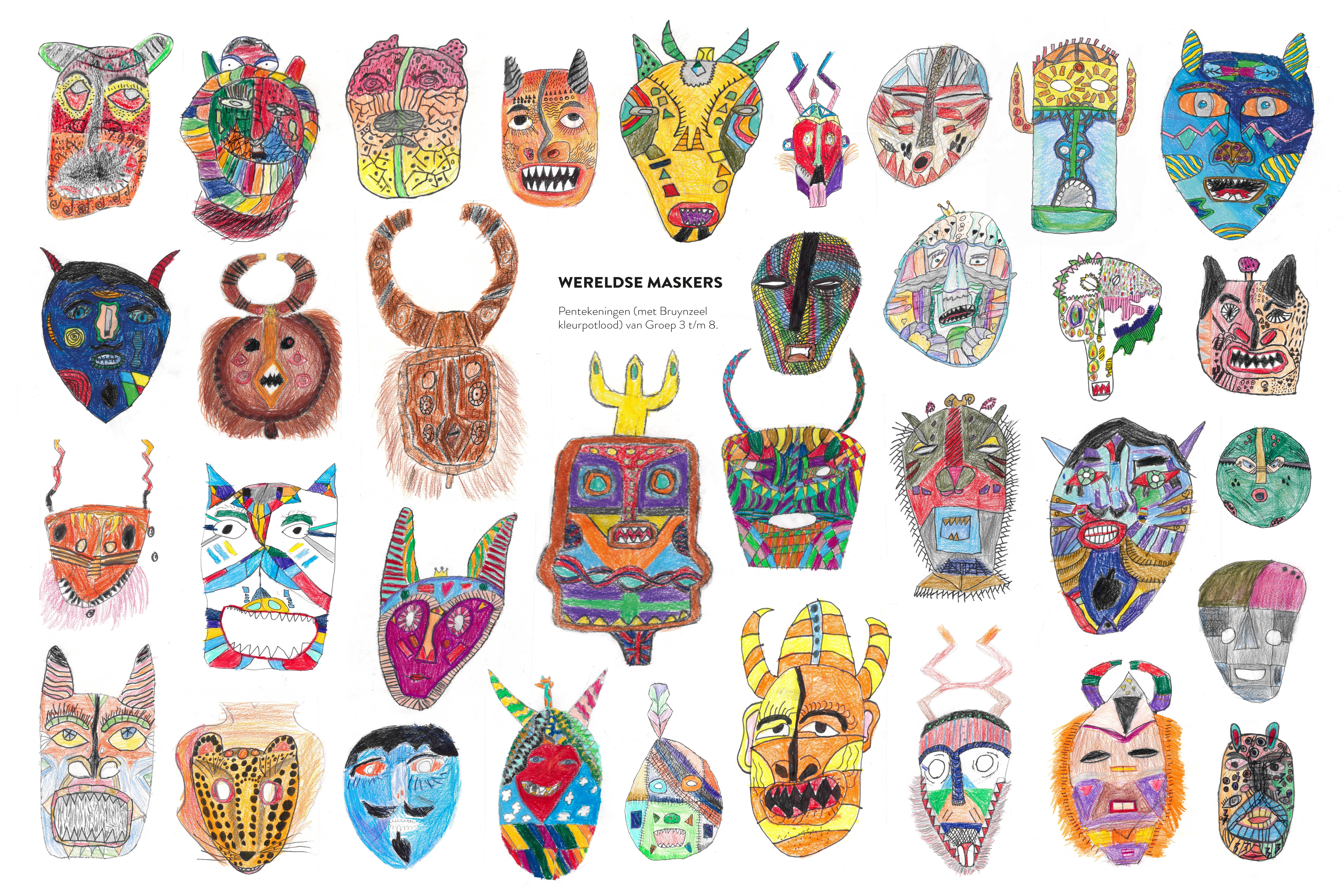 Namens het team en onze jonge en oudere Tuimelartists: een fijne carnaval of in ieder geval een mooie week vakantie. In de bijlage in hogere resolutie een waanzinnige poster met een selectie van ons onderzoek naar exotische maskers. Techniek: Pen/Bruynzeel Design Professional. Groep 3 t/m 8.